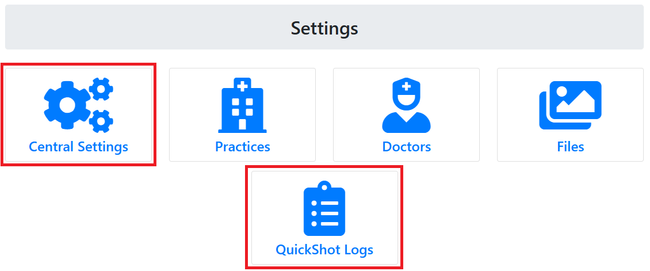 Click 'Central Settings' if it exists, then click 'QuickShot' to view logs for the new QuickShot interface.